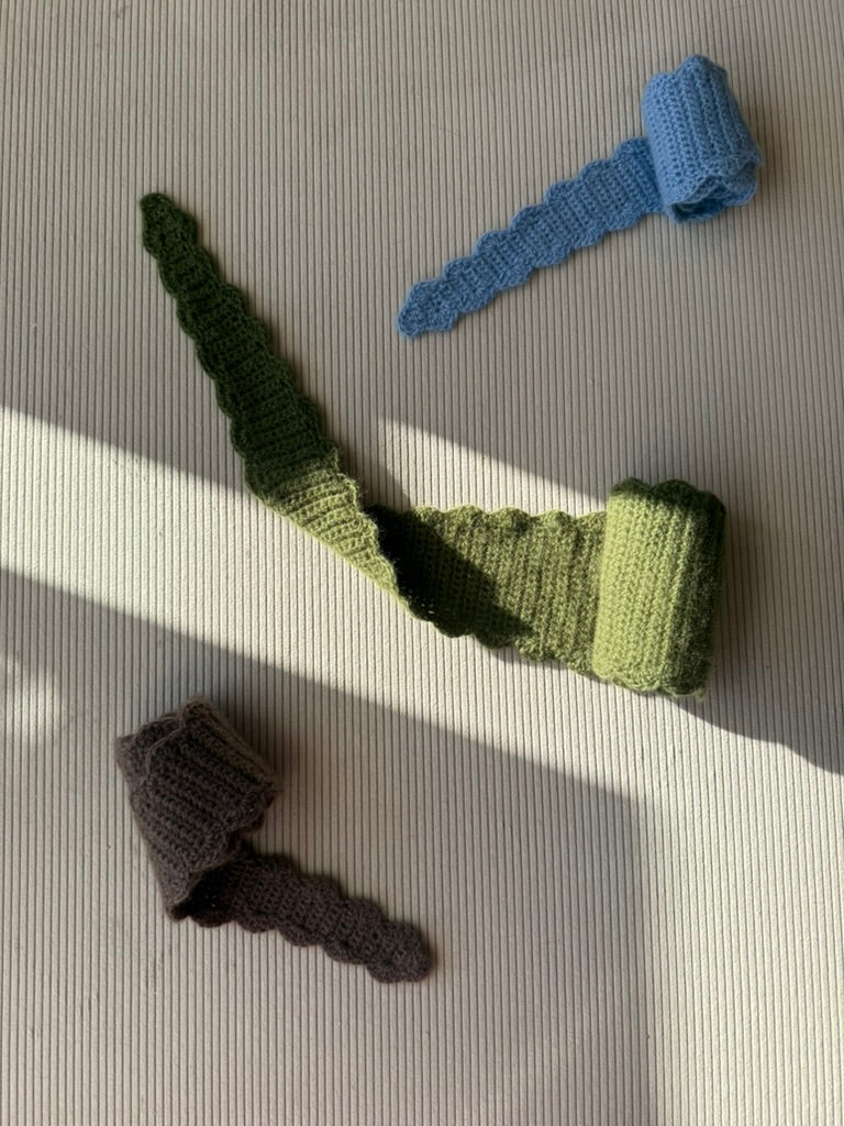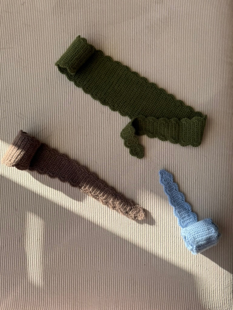 SIENNA SCARF er et mykt, lite skjerf som hekles i ett stykke fra spiss til spiss og avsluttes med en søt, dekorativ kant. Velg mellom liten størrelse som går én gang rundt halsen, eller stor som kan tvinnes to ganger for ekstra varme.